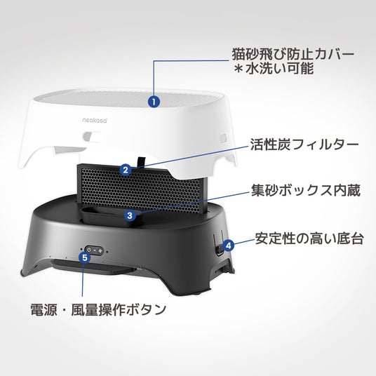 Neakasa AirStep は、踏み台機能と送風循環式の脱臭機能を組み合わせた、新発想の脱臭猫砂ステップです。