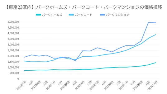 特にステータスが高いシリーズほど上昇率が高く、パークコートとパークマンションは約2.5倍の価格上昇を記録しました。