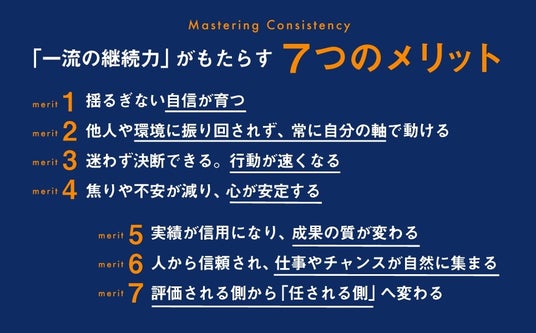 本書では、特に継続によって得られるメリットとして、次の7つをあげています。