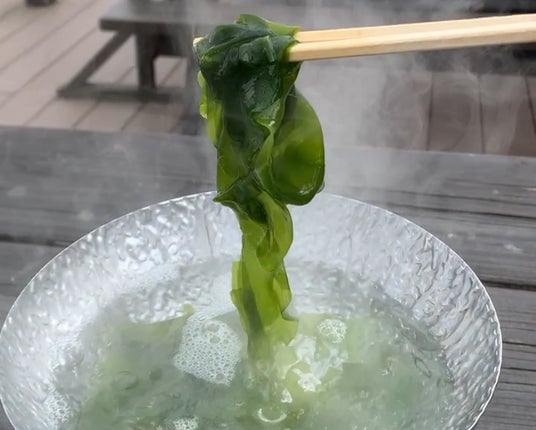 水揚げした獲れたてのわかめを大鍋で湯通しし、粗塩で塩もみをする塩蔵加工を体験。できあがった塩蔵わかめはお土産としてお持ち帰りください。