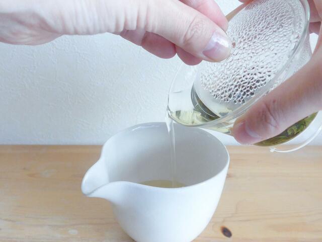 本来は「茶海(ちゃかい)」と呼ばれる道具を使いますが、ここでは手持ちのミルクピッチャーで代用しました。