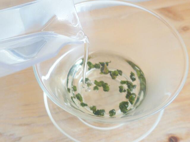 ガラス製なので、茶葉がゆっくり開いていく様子や、湯色が濃くなっていく過程がよく見えるのが印象的。