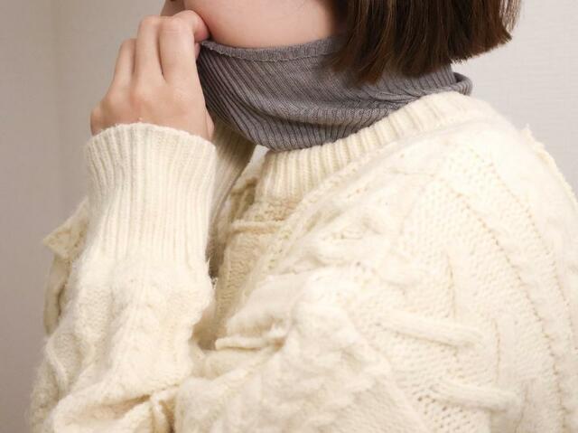 あえてこの首だけを重ね着するこちらを選んだのは、首を温めながら身体は火照りたくないから。