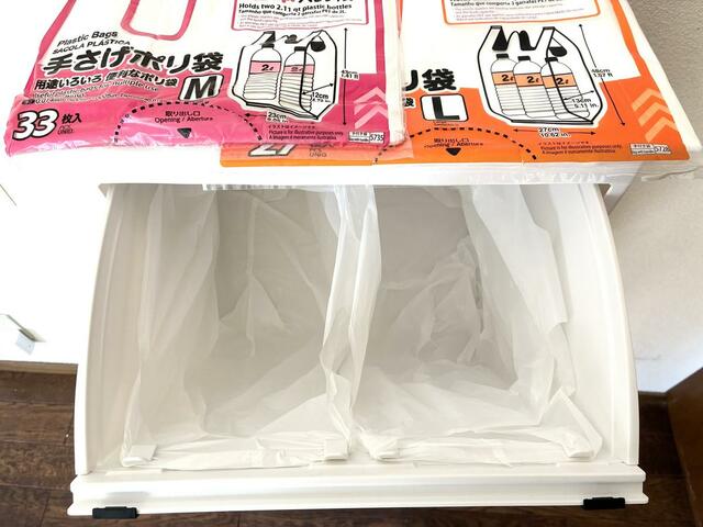 DAISOの「手提げポリ袋」MとLをセットしてみました。