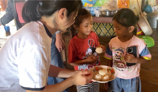 2025年12月末、なかよし学園はカンボジア・シェムリアップ州の避難民収容寺院で、教育支援・食料支援を実施し、全国の学校から集まったお米等を活用して炊き出しを行いました。
