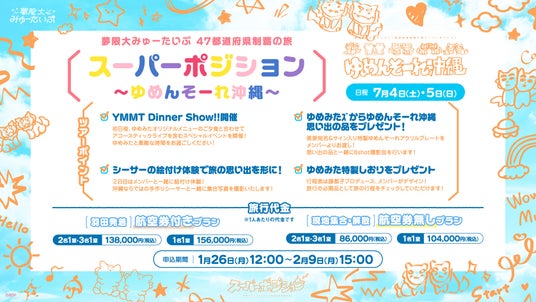 夢限大みゅーたいぷ 47都道府県制覇の旅「スーパーポジション」の締めくくりとなる”ゆめんそーれ沖縄”は、1月26日(月) 12:00より抽選申込受付を開始いたします。