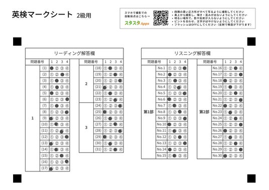 英検(R)一次試験の自己採点では、Reading/Listeningの入力作業が負担になりやすく、入力の手間が学習継続の障壁になることがあります。スタスタAppsは、解答速報を見ながら短時間で自己採点できる「自己採点シート」を提供してきましたが、今回、入力体験をさらに改善するため、紙のマークシート画像読取を追加します。