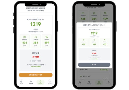 各技能の結果をもとに、一次試験の結果の目安(CSEスコア推定、合否の目安)を表示します。