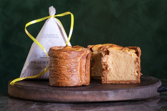 “ちょっとよそゆきのフランスおやつ”をコンセプトに掲げるパケモンテは、無添加素材にこだわり、厳選した原材料を用いた菓子づくりを行っています。代表商品「フラン・パティシエ」は、特殊技法による多層のパイ筒と、塩味をきかせた底のブリゼ生地を別焼きし、組み立てた後にフラン液を流し込んで焼き上げます。外はパリサク、中はプルトロとした食感のコントラストが特長です。バニラのフラン液には、長崎の養鶏場から直送される、無添加飼料で育てた新鮮で濃厚な卵を採用。フランス産発酵バターと香り高いバニラビーンズをふんだんに加えています。本企画の「ハヤセシュークリーム」に用いるカスタードは、このフラン液をベースにアレンジしたものです。