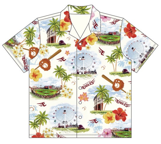 スタジアムなどがデザインされた、夏らしいオリジナルアロハシャツです。