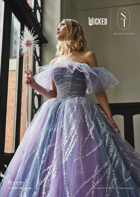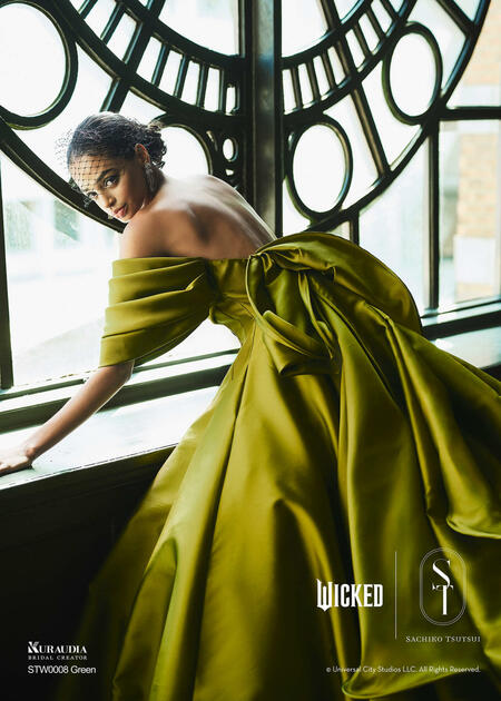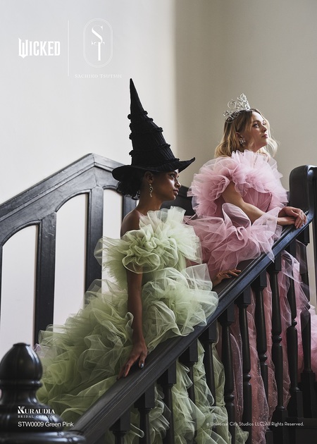 『ウィキッド』の世界観と、SACHIKO TSUTSUIを象徴する立体チュールの美しさを融合させた特別なコレクションは、ピンクとグリーンの2色がラインナップ。