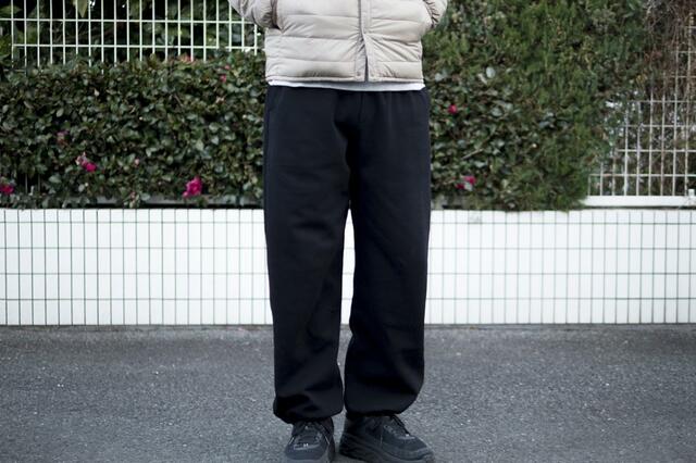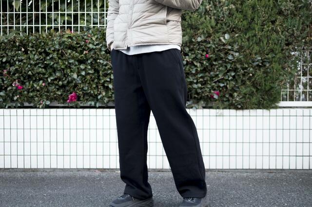 こういったスウェットパンツらしいラクな仕様は残しつつ、生地の質感とシルエットで綺麗な印象になっている。