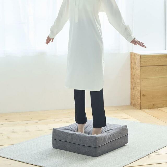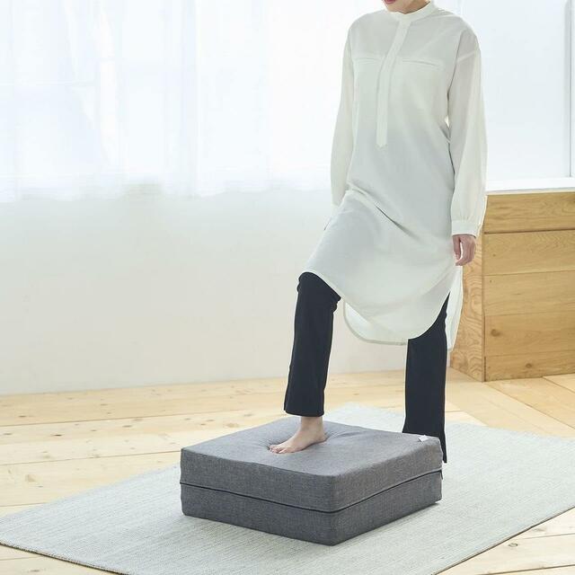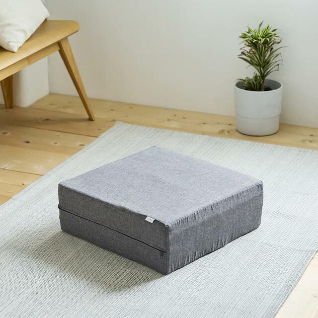 使わない時はソファの横に置いてクッションとして活用したり、収納スペースに立てかけたりと、場所を選びません。グレーのシンプルなデザインは、どんなインテリアにも自然に馴染みます。