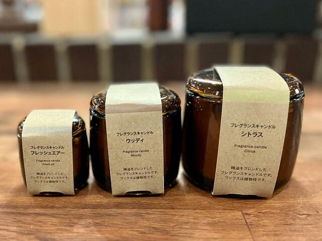 無印良品「フレグランスキャンドル ウッディ M」1,290円(税込・写真中央)