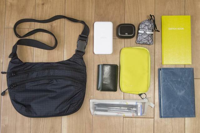 普段出かける時によく持ち歩く、財布やモバイルバッテリーに文庫本など、こちらをバッグに入れてみましょう!