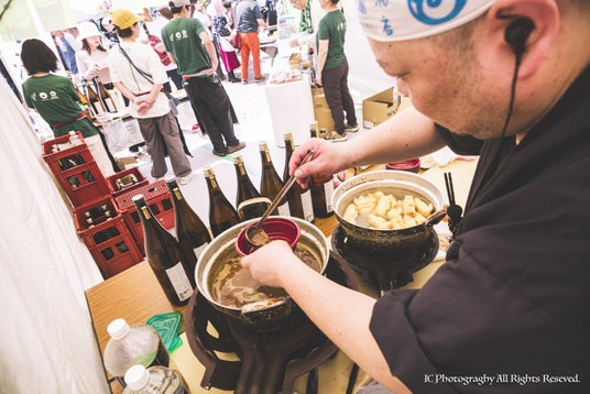 会場は道頓堀川に隣接する「湊町リバープレイス」。 3月下旬の柔らかな日差しの中で楽しむ冷酒はもちろん、肌寒い時には身体に沁みる**「熱燗」**も格別です。その日の気温や料理に合わせて、最適な温度帯で日本酒を楽しめるのも本イベントの醍醐味です。