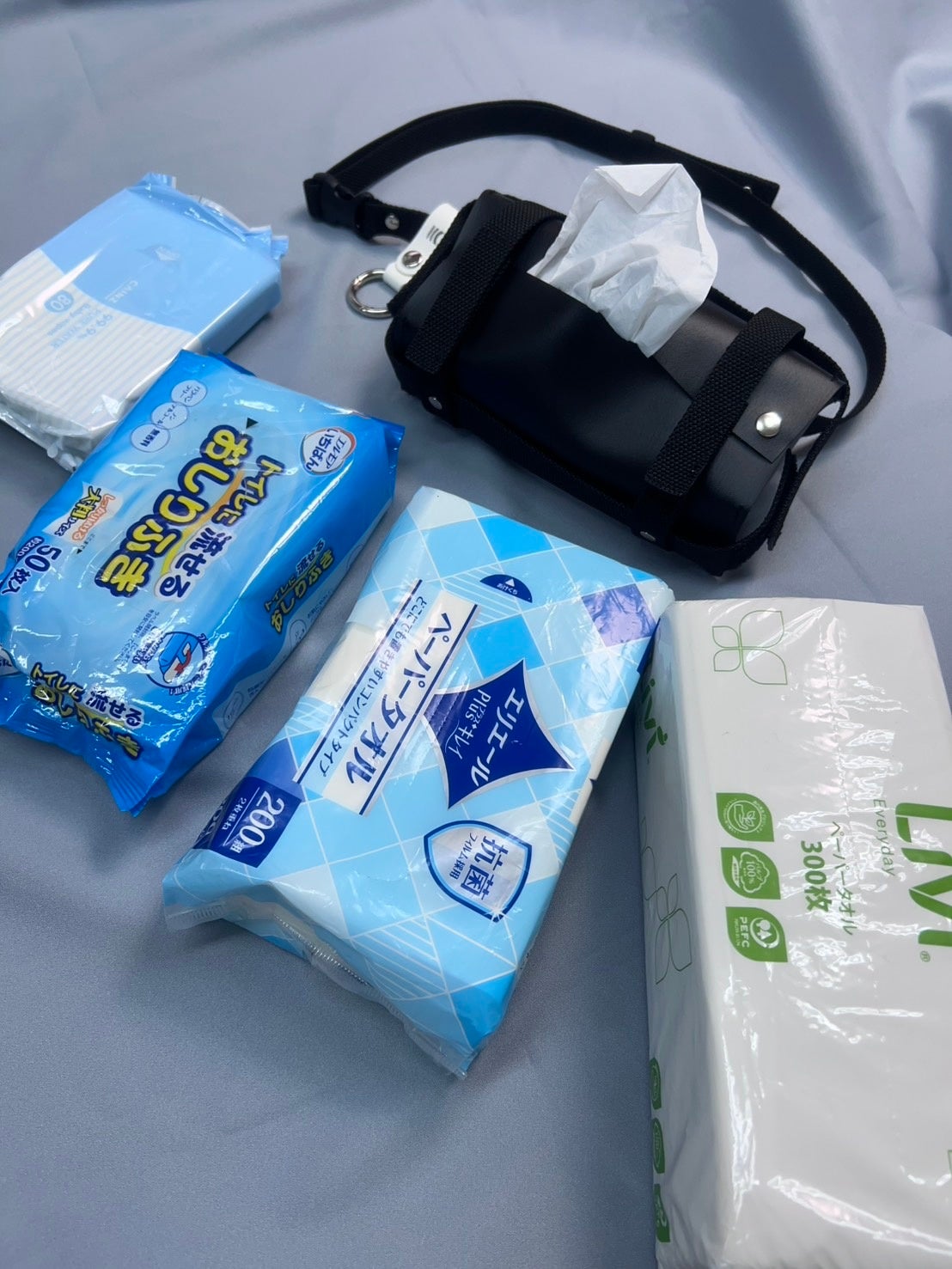 どこに持ち歩いても、いつもティッシュをそばに置いておけます。