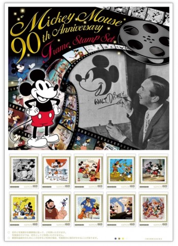 ミッキーのスクリーンデビュー90周年を記念して、歴代の人気作品のアートでデザインされた特別なフレーム切手が登場。