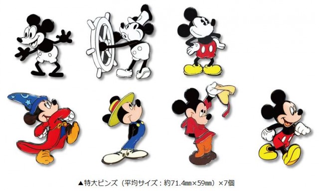 年代の異なるミッキーが特大サイズのピンズになりました。