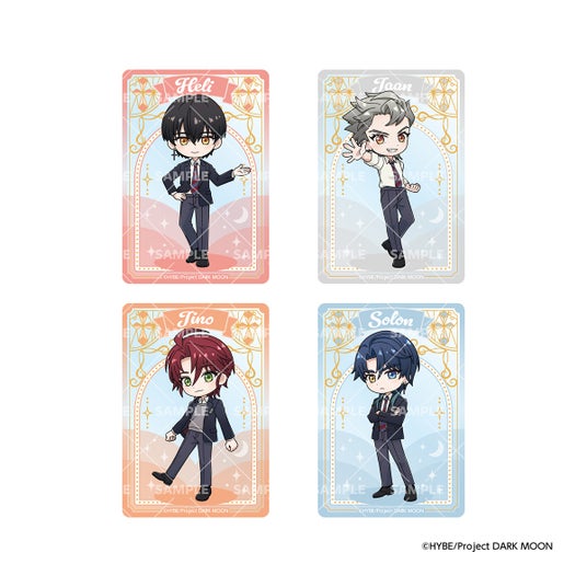 本商品には、全16種のオリジナルクリアカードのうち、1枚がおまけとしてランダムでついてきます。シックでおしゃれなSNS風デザインや、ここでしか手に入らない描き起こしミニキャライラストを使用したクリアカードが登場! さらに、レアカードはきらりと輝くホログラム仕様。