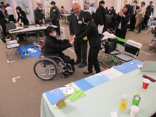 企業ブースで「お仕事体験」をした方へ、模擬給料を支給し、貯まった模擬給料で府内の名産品と交換が可能