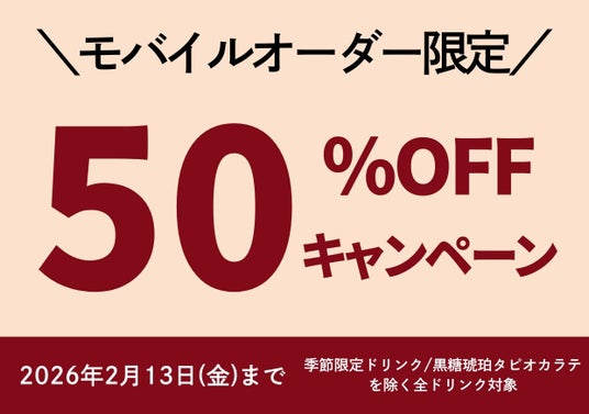 内容:モバイルオーダーでご注文のお客様限定!ドリンク50%オフキャンペーン