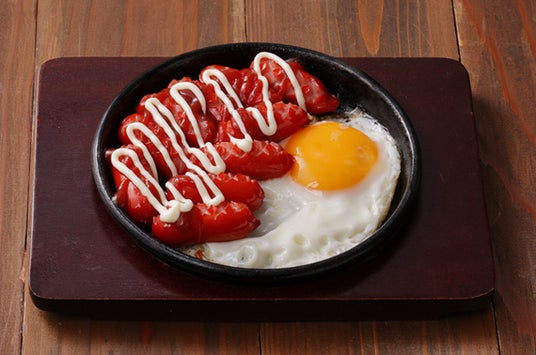 赤ウインナーエッグ約15年ぶりに赤ウインナーメニューを復刻!令和版は人気の赤ウインナーを増量し、目玉焼きをトッピングしたボリューム満点の逸品に仕上げました。