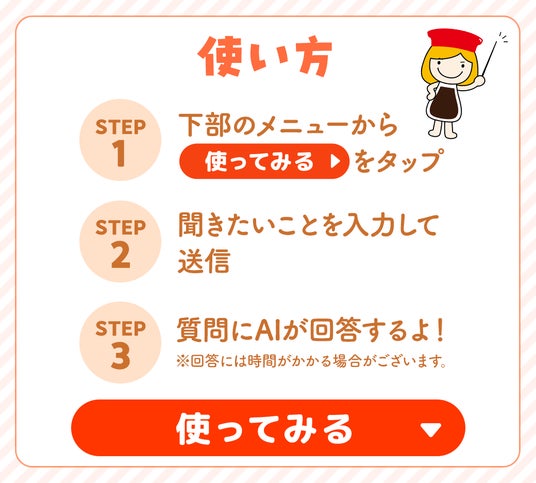 「みつかる♪きょうのごはん」を使うことで、「なあにちゃん」と友達に相談するような気軽さで、毎日のごはんを決めることができます。