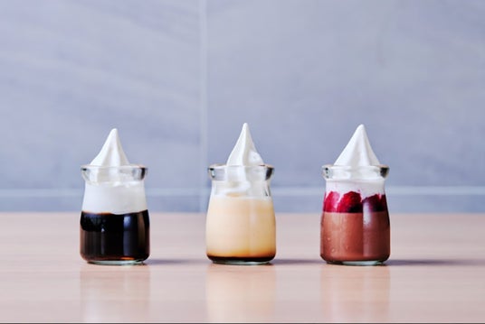はなをりプリン(写真中央) ※ソフトクリームをのせたアレンジ例