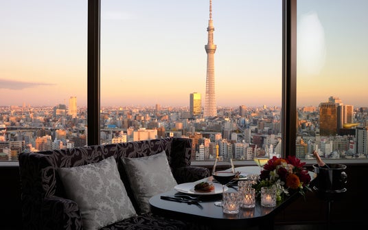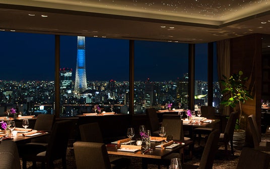 浅草の街並みと東京スカイツリー(R)を望む高層階の特等席で、時間とともに移ろう景色を眺めながら味わうディナーは、