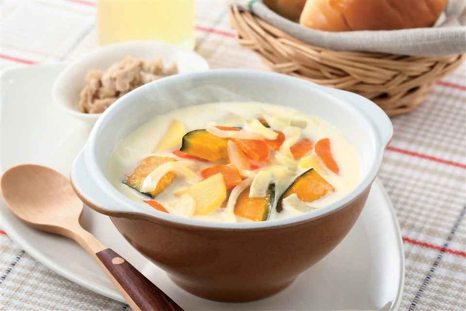 かぼちゃとじゃがいものミルクコンソメスープ