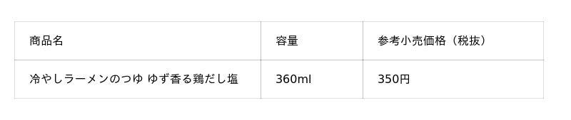 3月11日(水)より、近年の猛暑日増加をうけた夏の夕飯食卓ニーズに対応する新商品として「冷やしラーメンのつゆ ゆず香る鶏だし塩」を発売いたします。