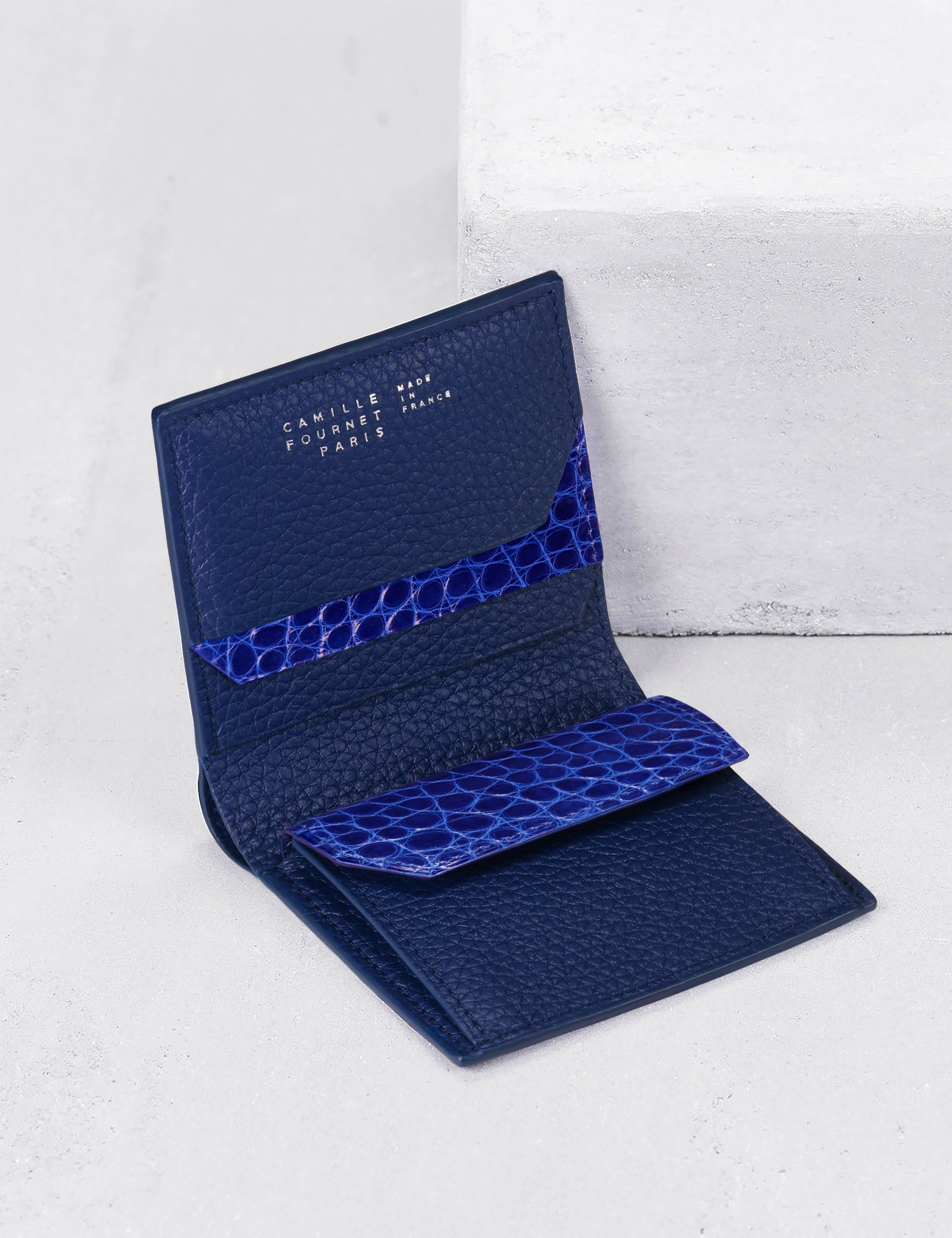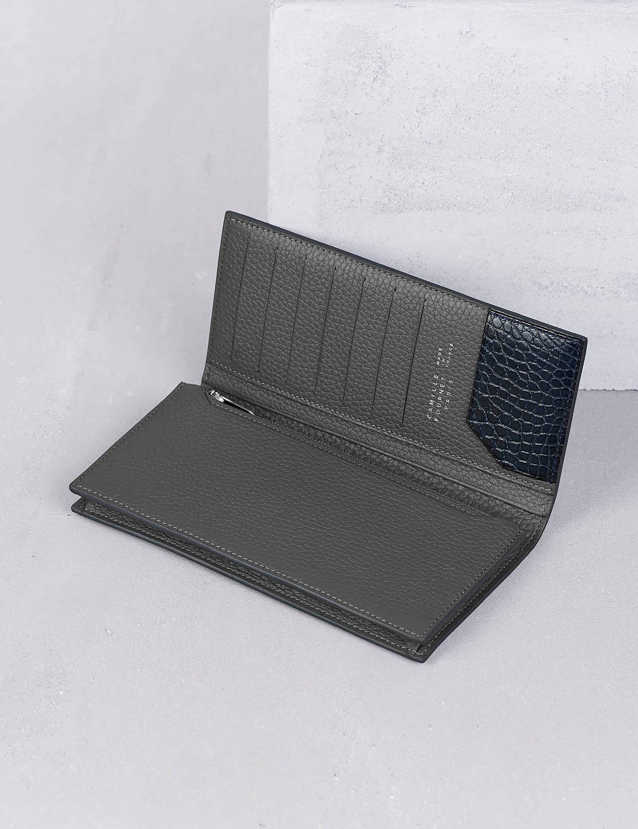 春の新スタートにピッタリの軽やかなベースカラー。開くとリッチなアリゲーターの光沢が美しい、カミーユ・フォルネ独特なデザインVERSO(ヴェルソ)シリーズ。