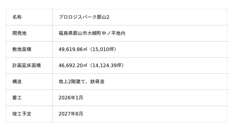 物流不動産の所有・運営・開発のリーディング・グローバル企業であるプロロジス(日本本社:東京都千代田区丸の内、代表取締役会長 兼CEO:山田 御酒)は、2026年1月26日、福島県郡山市で開発中の先進的物流施設の集積拠点「福島郡山LLタウン」において、4棟目の開発となるマルチテナント型物流施設「プロロジスパーク郡山2」の起工式を挙行した、と発表しました。すでに賃貸面積の約30%において入居が決定しており、引き続き入居企業を募集しています。