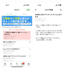 「滞在中いつでもスマホで情報が分かるので、このアプリを使えるキャンプ場の利用頻度が上がりそうです。」