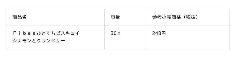 Fibeeひとくちビスキュイは、手を汚さずに手軽に食べられるおやつとしてご好評をいただき、Fibeeシリーズ内で単品売上No.1※を記録しています。今回発売する「シナモンとクランベリー」は、「気分で選べる他のフレーバーが欲しい」というお客様の声にお応えし開発した、待望の新フレーバーです。