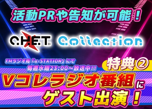 様々な媒体で活躍するVTuber、Vライバーにスポットを当てるトーク&音楽のコーナー。また、VCollectionでは様々な企画や音楽など作品が生まれる予定で最新プロジェクト情報もお届けします。