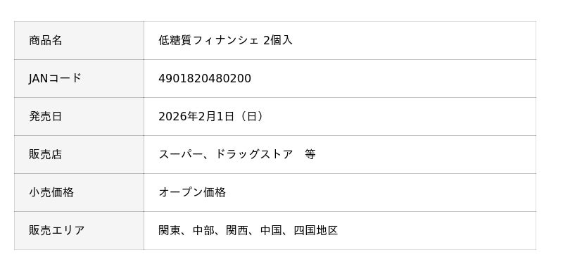 敷島製パン株式会社(Pasco)は、糖質が気になる方も気分に合わせて気軽に食べられるおいしいパン・菓子を目指した「低糖質」シリーズの新商品として、糖質オフで食物繊維も摂れる「低糖質フィナンシェ 2個入」を2026年2月1日(日)より関東、中部、関西、中国、四国地区にて発売します。