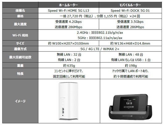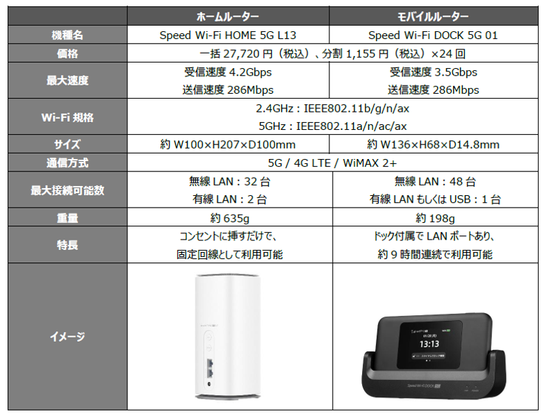 データ容量の上限無く使い放題かつ、端末が届いた日からすぐに通信が利用できる個人向けワイヤレスホームルーターサービスです。固定回線(光回線)のような開通工事やインターネット接続の設定が必要なく、コンセントにさすだけで高速通信をご利用いただけます。自宅利用に適したホームルータータイプに加え、手軽に持ち運びが可能なモバイルルータータイプもご用意しており、ライフスタイルに合わせて端末をお選びいただけます。