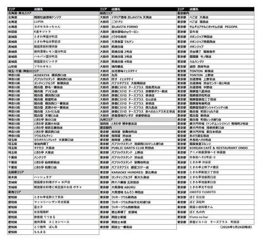 ◆期間: 2026年2月~(各店舗、スクラッチカードが無くなり次第終了)◆キャンペーン開催店舗:全国137店舗(2026年1月26日現在)