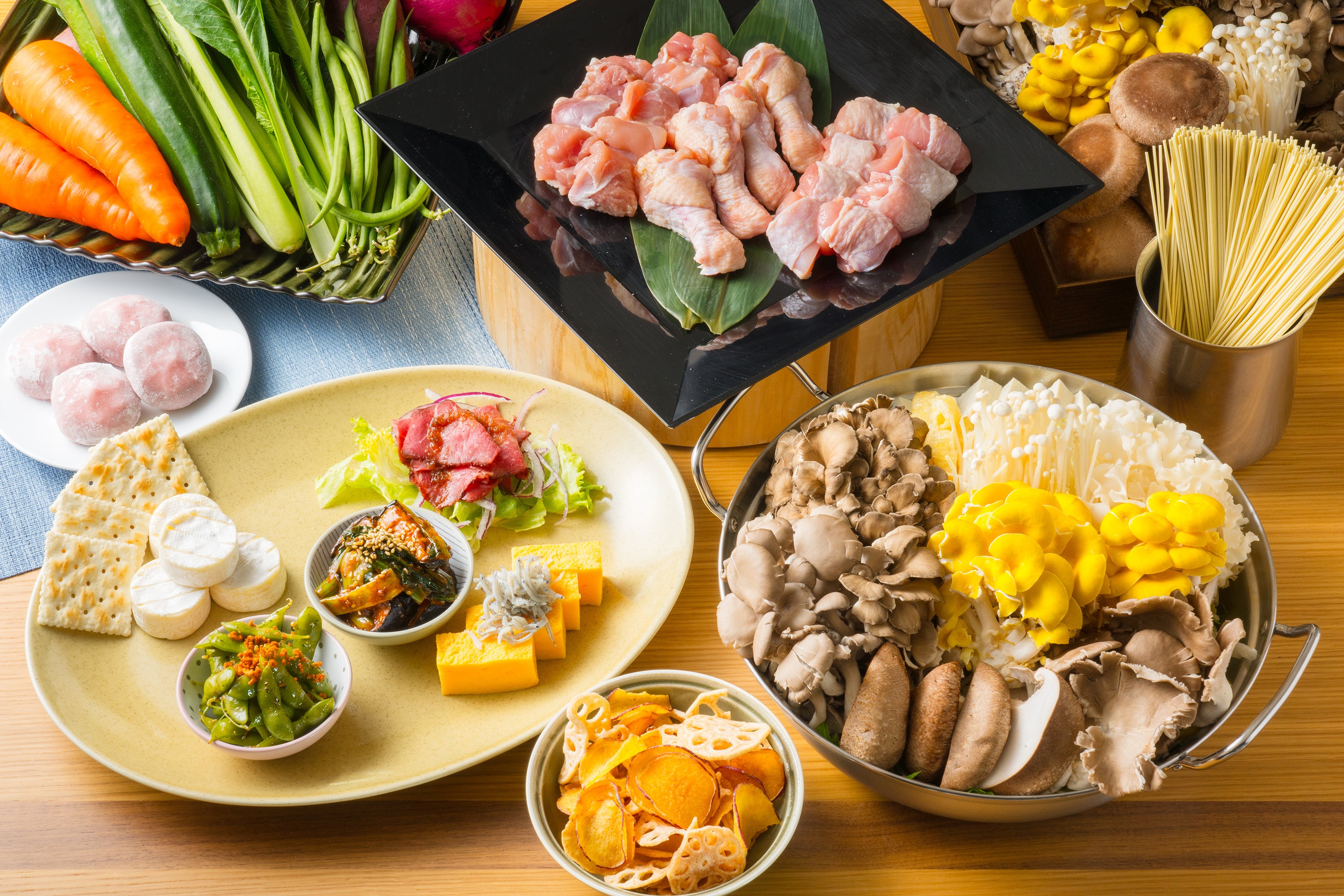茨城の厳選食材とこだわり調味料を掛け合わせた、贅沢鍋フルコースを開発しました。メインの鍋のほか、前菜や〆の麺、甘味までお楽しみいただけるプランです。