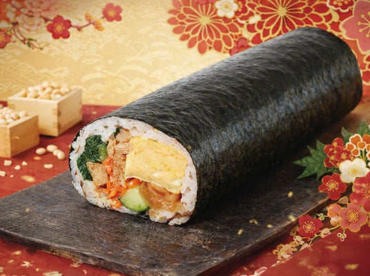 お米少なめ、大豆ミート、濃厚豆乳入りふんわり卵焼き、たっぷり野菜でボリューム満点なのにヘルシーな恵方巻です