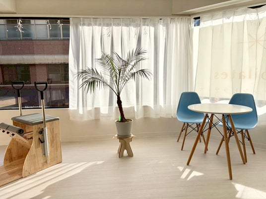 大きな窓があり、開放的で明るいLa pilates 大分店