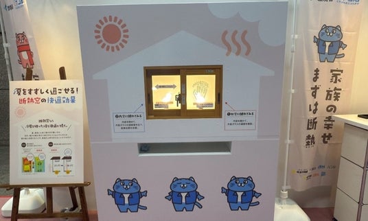 会場では、断熱の仕組みや効果をわかりやすく紹介する展示のほか、猫のキャラクター「あったかいねぇこ・すずしいにゃ~こ」と一緒に楽しめるコンテンツもご用意。「今の家でもできる断熱リフォーム」がわかる内容になっています。