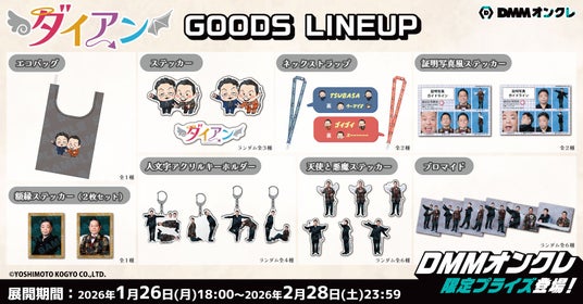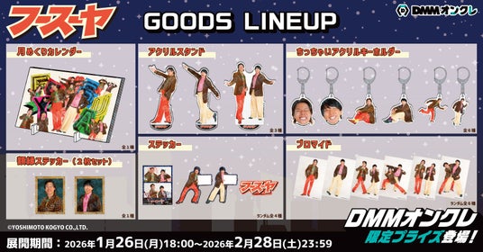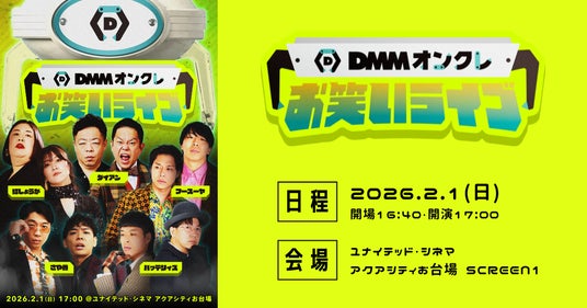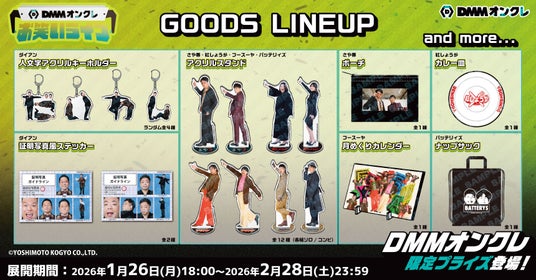 合同会社DMM.com(本社:東京都港区、PFカンパニーCEO:村中悠介、以下DMM)が提供するオンラインクレーンゲームサービス「DMMオンクレ」は2026年2月1日(日)に「DMMオンクレお笑いライブ」を開催いたします。これを記念し、出演するダイアン・さや香・紅しょうが・フースーヤ・バッテリィズの撮り下ろし素材を使用したDMMオンクレ限定グッズを2026年1月26日(月)18時より展開いたします。