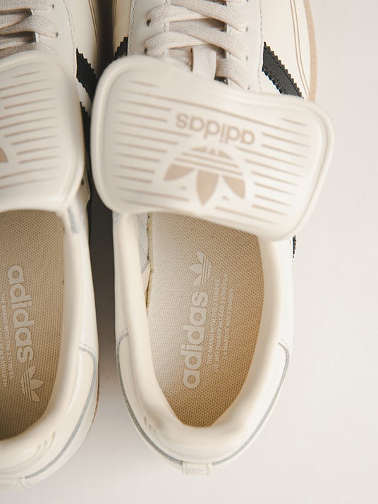 シックで力強い印象のコアブラックと、ニュートラルなカラーが足元に柔らかな抜け感を演出するコアホワイトの2色展開で、モノトーンながらもスタイリングのアクセントになるアイテムです。