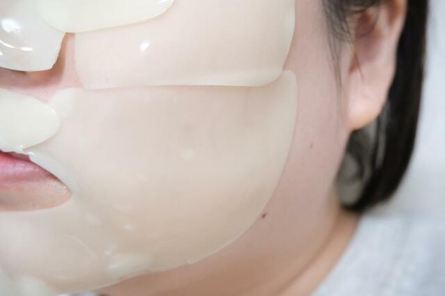 一般的な不織布のシートマスクではなく、美容成分をたっぷり含んだゲル状のシートが肌に密着し、貼ったまま過ごせるのが特長。