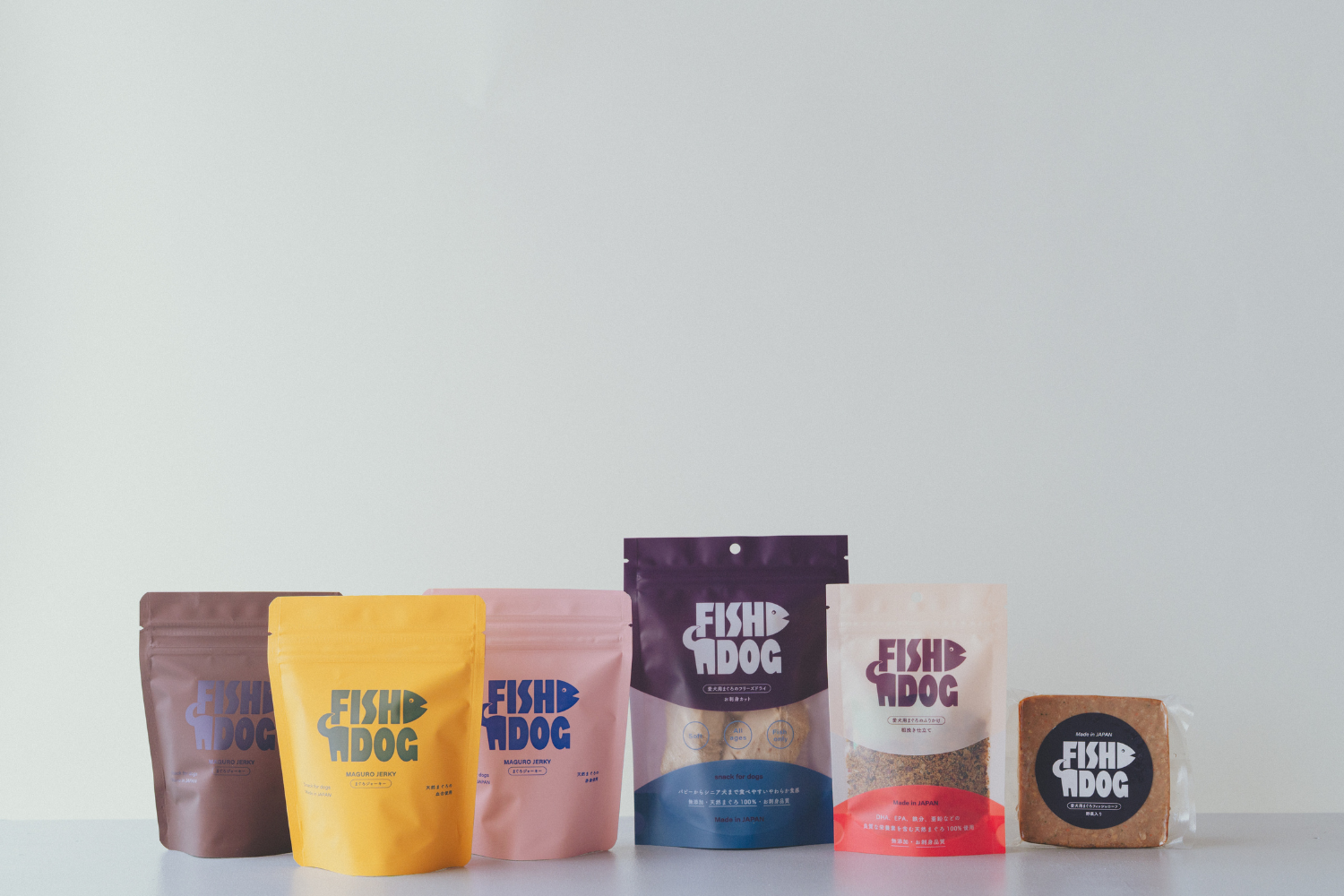 「FISHDOG」では、大切な家族である愛犬のおやつを製造販売。卸商品の加工で出てしまうまぐろの端材を余すことなく使い、持ち歩きしやすく、小型犬から老犬それぞれが食べやすい栄養たっぷりの商品をお届けしています。