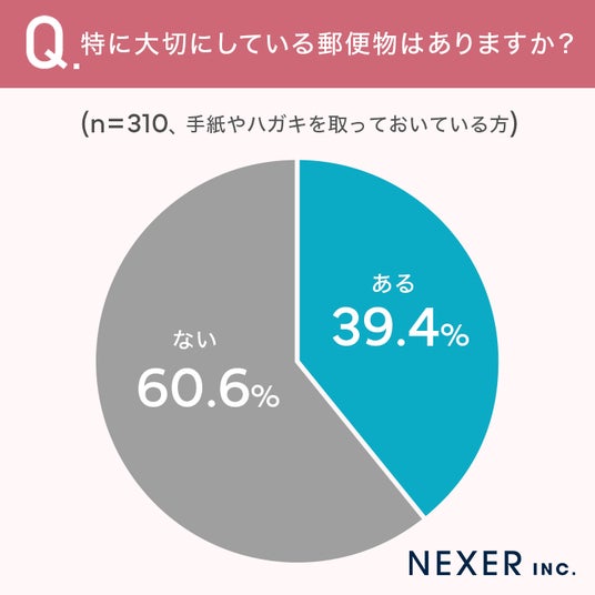 その結果「ある」と回答した人は39.4%でした。約4割の人が、単に保管しているだけでなく、特別な思い入れのある郵便物を持っているようです。