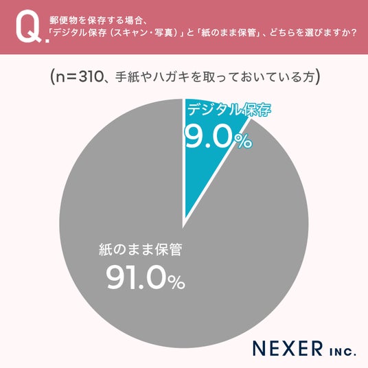 その結果「紙のまま保管」が91.0%と圧倒的多数でした。「デジタル保存」を選んだ方は9.0%にとどまっています。